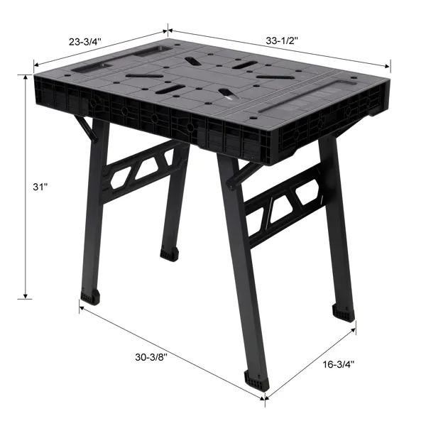 - This workbench features an innovative foldable design, allowing for effortless setup and storage. With a quick 3-second unfold/fold mechanism, it transforms from a compact unit to a functional workspace in an instant. When folded, its sleek profile measures just 3.5 inches in height, making it an ideal space-saving solution for garages, workshops, or small storage areas.